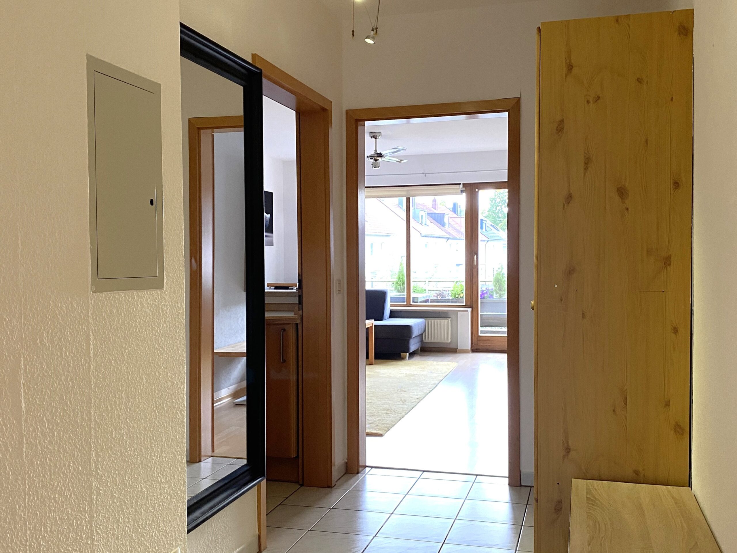 Diese gut geschnittene 2-Zimmer Wohnung befindet sich im 2. Obergeschoss eines gepflegten Mehrfamilienhauses in Zirndorf. Mit 58 m² bietet die Wohnung ausreichend Platz für Singles oder Paare - mitten in einer gepflegten und zentralen Wohngegend. Einkaufsmöglichkeiten, Schulen und öffentliche Verkehrsmittel sind in wenigen Minuten zu erreichen. Die Wohnung ist in einem gepflegten Zustand und verfügt über ein geräumiges Schlafzimmer, ein Badezimmer mit Badewanne sowie einem gemütlichen Wohnzimmer mit Essbereich, einer Küche und einem großzügigen Balkon. Die einzelnen Räume können über den Flur erreicht werden.