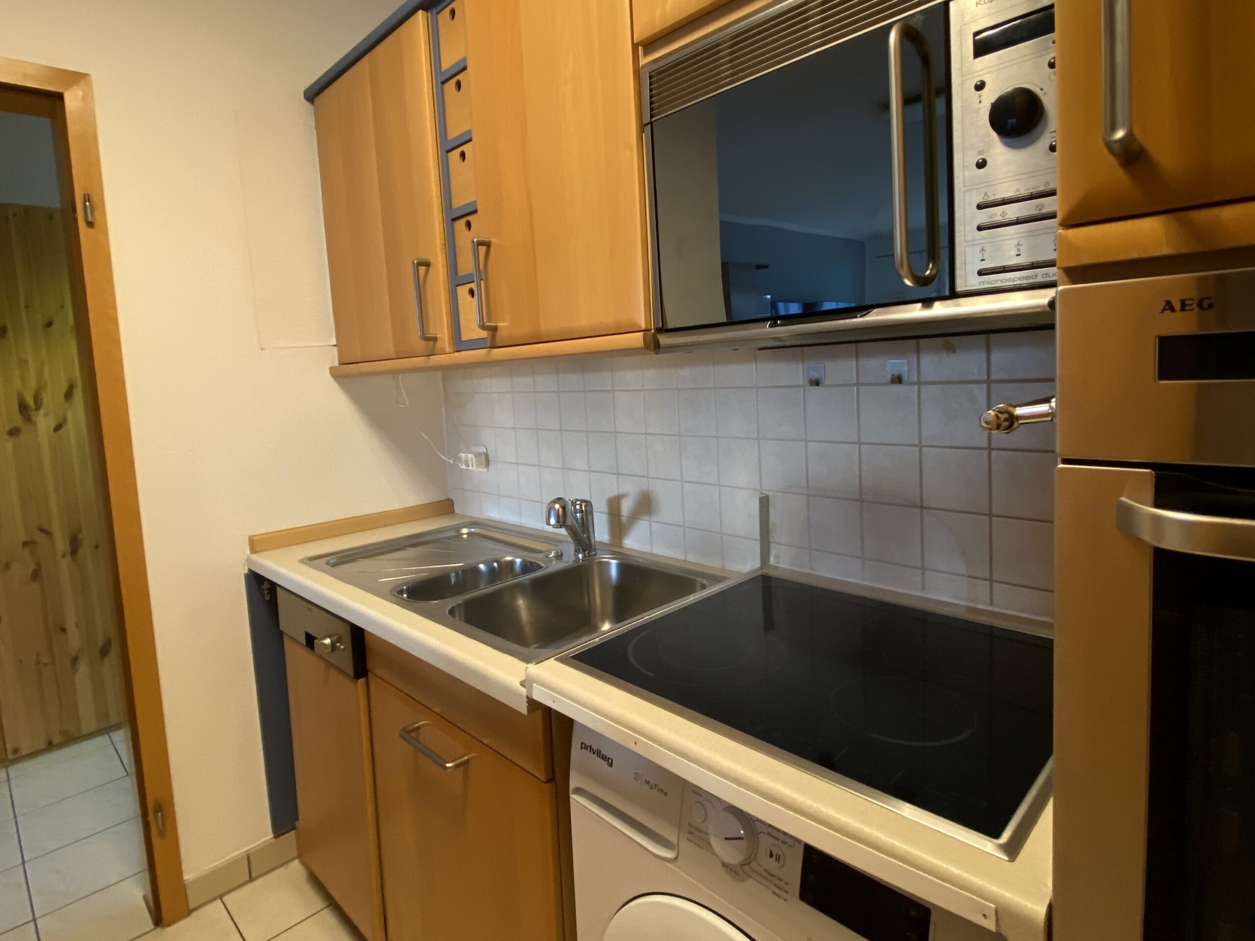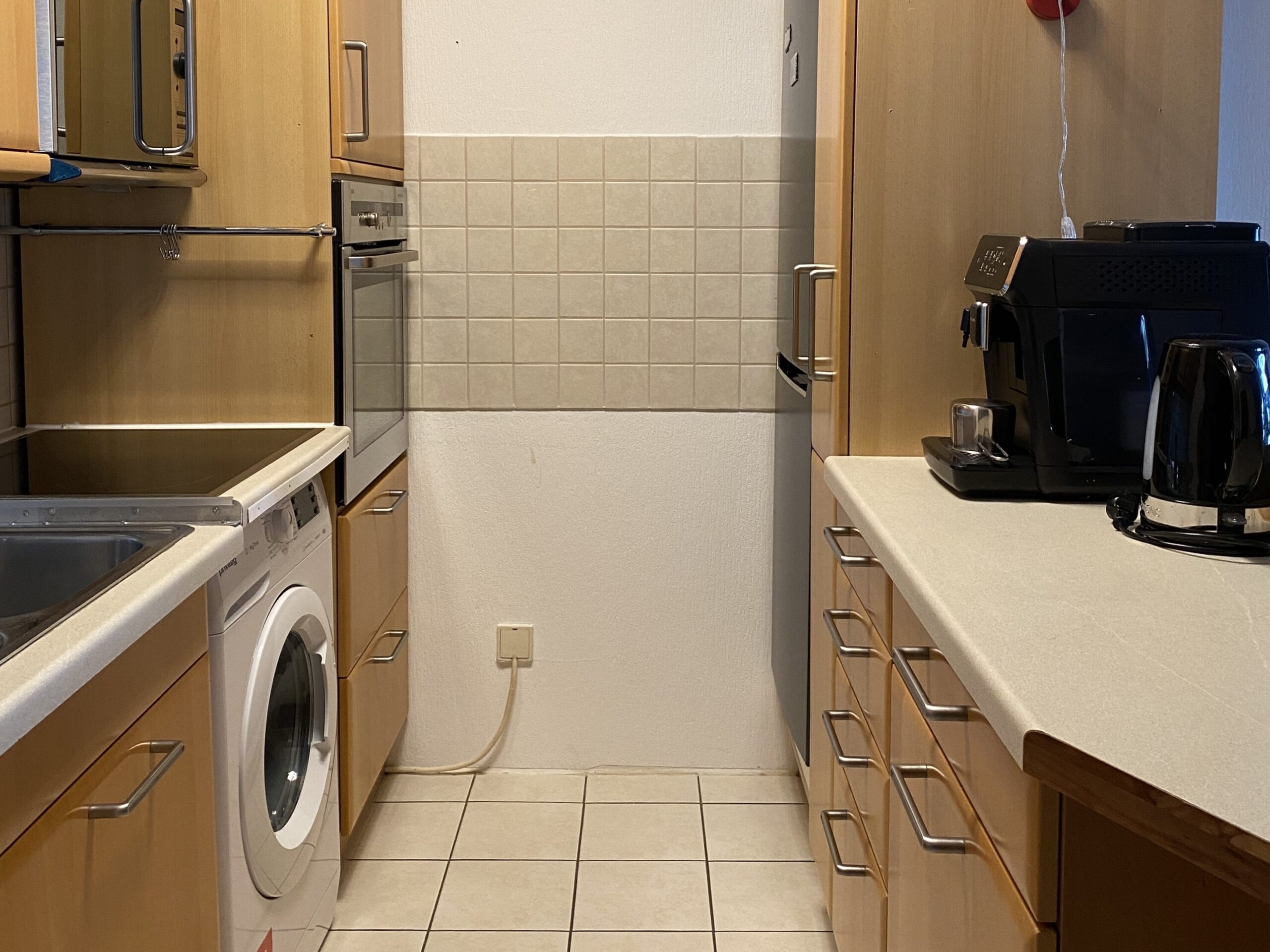 Die Einbauküche ist mit einer Kühl-Gefrierkombination, einem Herd und einem Markenofen als auch einer Waschmaschine ausgestattet. Gegen eine Ablöse kann die Küche von Ihnen direkt vom Vormieter übernommen werden. Die Waschmaschine könnte alternativ auch in einem separaten Wasch-/Trockenraum im Keller angeschlossen werden.